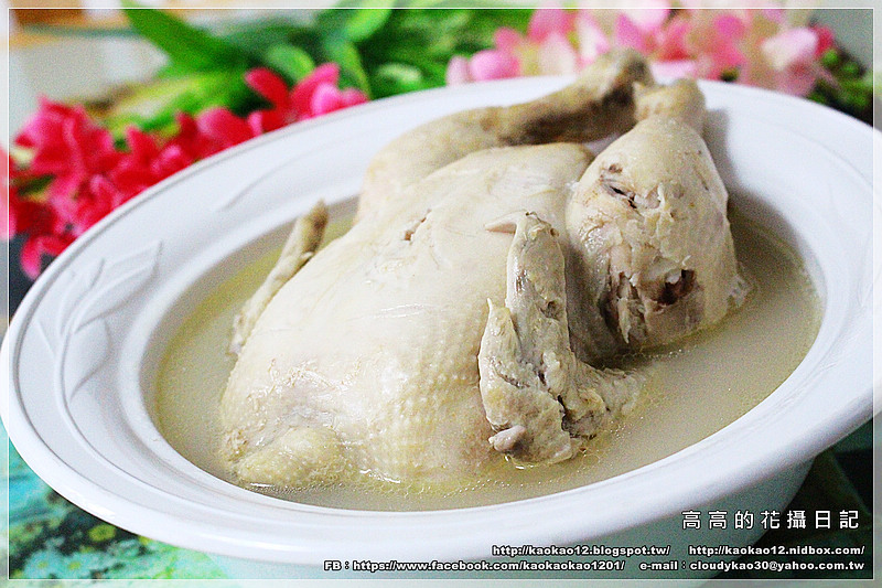 步驟二:將整隻雞和雞湯一同放入電鍋內蒸煮,等電鍋跳起即可盛盤上桌