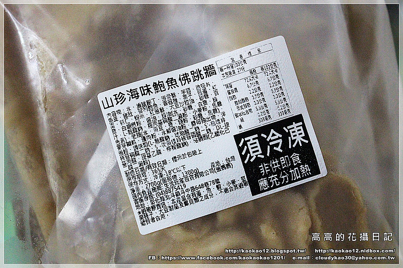 佛跳牆也是分成兩袋包裝,食材中最貴的鮑魚是住在另外一個獨立套房的(笑),