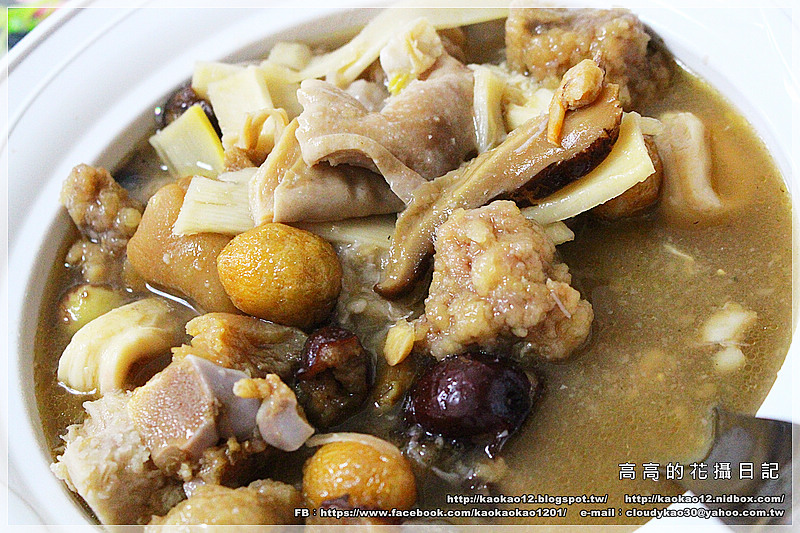 像是有芋頭、魚皮、滷豬腳丁、栗子、豬肚、排骨酥、香菇絲、脆筍片、鳥蛋…等,