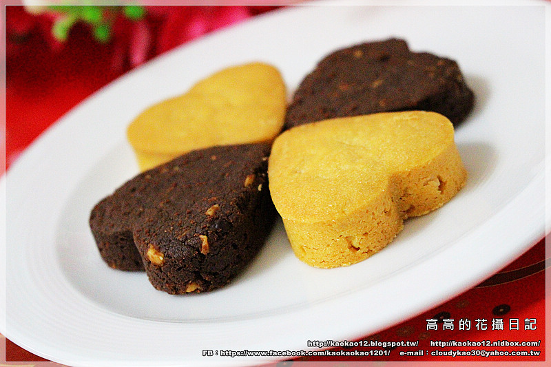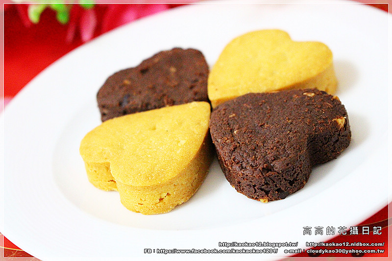悅滿真情禮盒內的四塊手工餅乾一共有兩種口味哦!