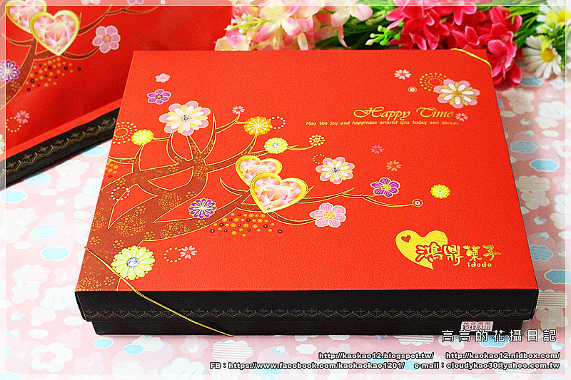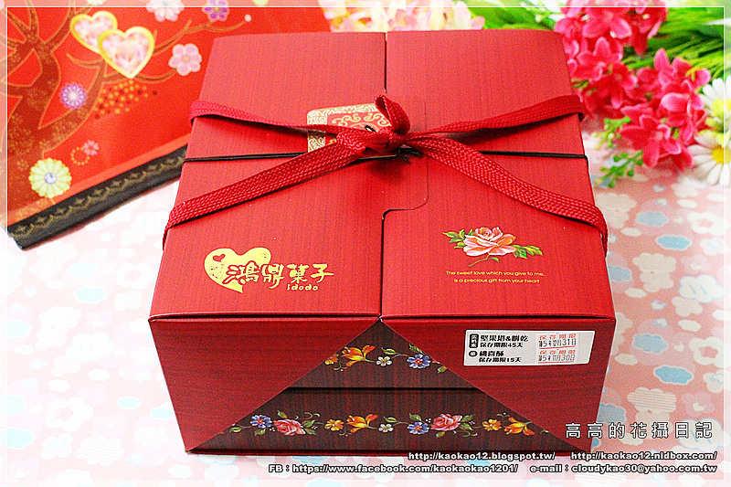我特別喜歡悅滿真情禮盒在大紅外盒上彩繪的這些花朵圖案。