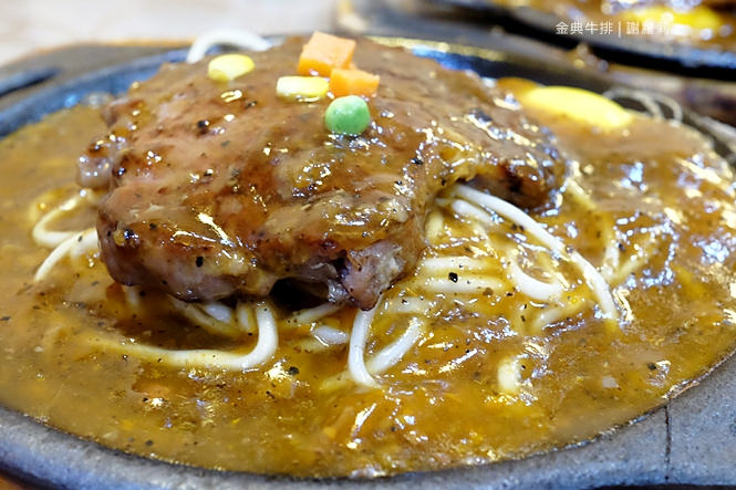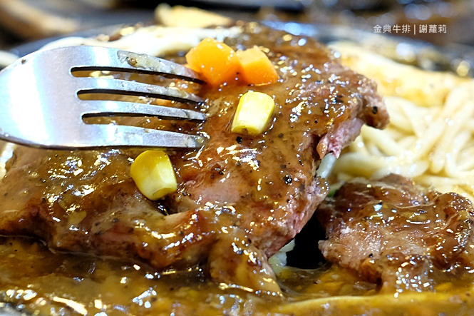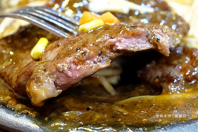牛肉還算不錯,口感上富有嚼勁,初入口能感覺它與黑胡椒醬結合而帶來的香辣感,其中筋含量會比較多,不過也稱得上肉汁豐盈,若以平價牛排來說,個人會比較推薦三和夜市中的吉市:)