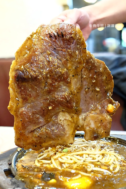 洪先生一直催促我快點拍,因為他舉到手都爆青筋,實在是這牛排給它沉甸甸地超級重XD,事實上要開吃也讓人有些困擾,因為要先吃麵跟翻蛋,但到底要從哪邊開始吃?!全部都是肉阿!