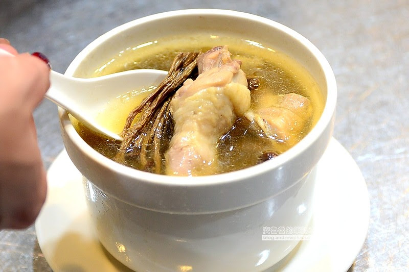 ▼加入了紅棗跟枸杞一起燉煮,何首烏雞湯喝起來是甘甜帶著清爽的香味,何首烏的味道還滿清晰可辨的。湯品裡面有一隻雞翅跟一塊雞腿肉,雞肉不會乾柴吃起來軟嫩,湯喝起來稍微比菇菇雞湯油了一些,但還不會讓人覺得油膩,喝進肚子裡面有一股神清氣爽的感覺!
