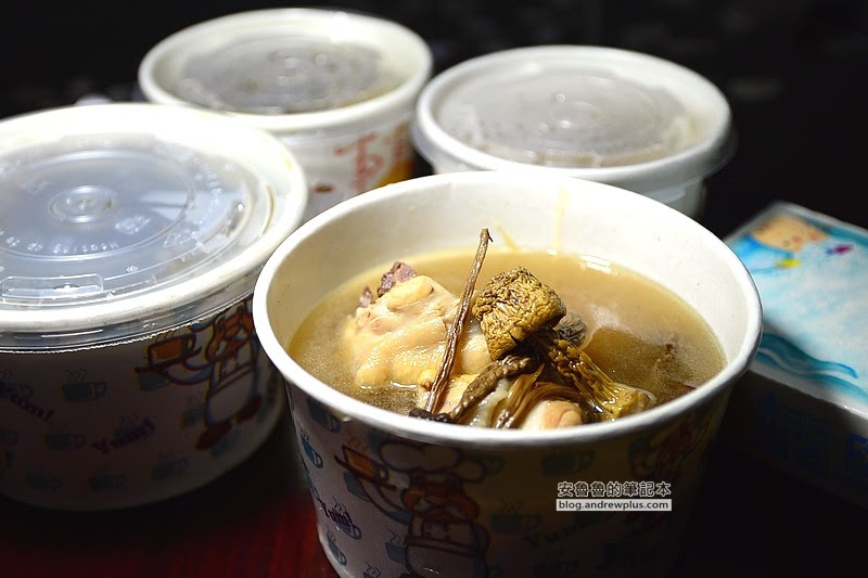 ▼販售的產品主打四種湯品,何首烏雞湯、菇菇雞湯、苦瓜排骨和金針排骨,再來就是滷肉飯、雞肉飯、乾麵、燙青菜等小菜,因為座位不多所以客人幾乎都是外帶,店家也提供外送服務,外送範圍約一公里內,只要滿300元就可以外送了,如果超過一公里範圍的話,也可以使用foodpanda美食外送網的服務