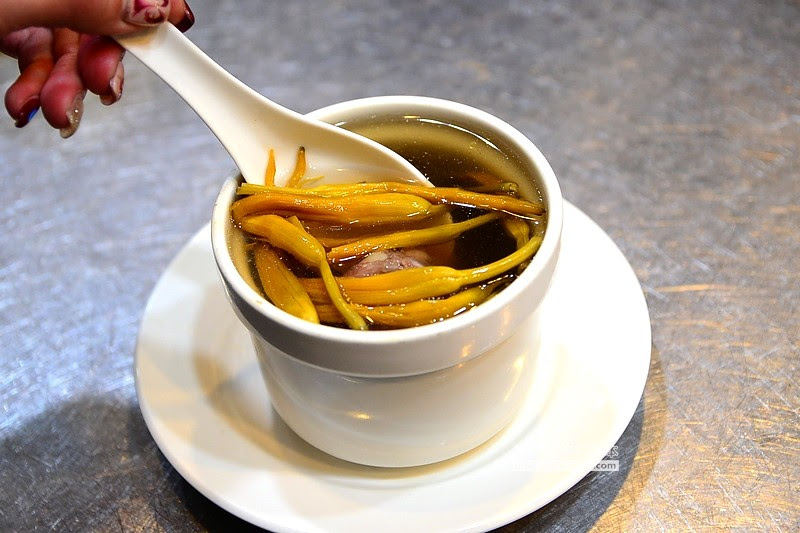 ▼金針菇排骨湯喝起來清爽而且也不油膩,脆脆的金針花除了咬下去的口感還散發著甘甜,排骨肉Q彈紮實無腥味