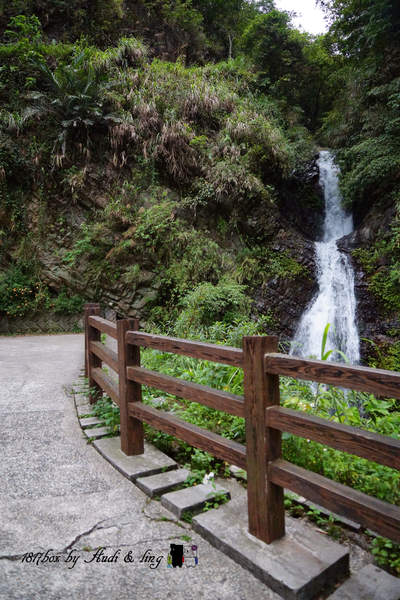經過觀音橋往右側的蜈蚣山山麓上,有一座美麗雄偉的瀑布,