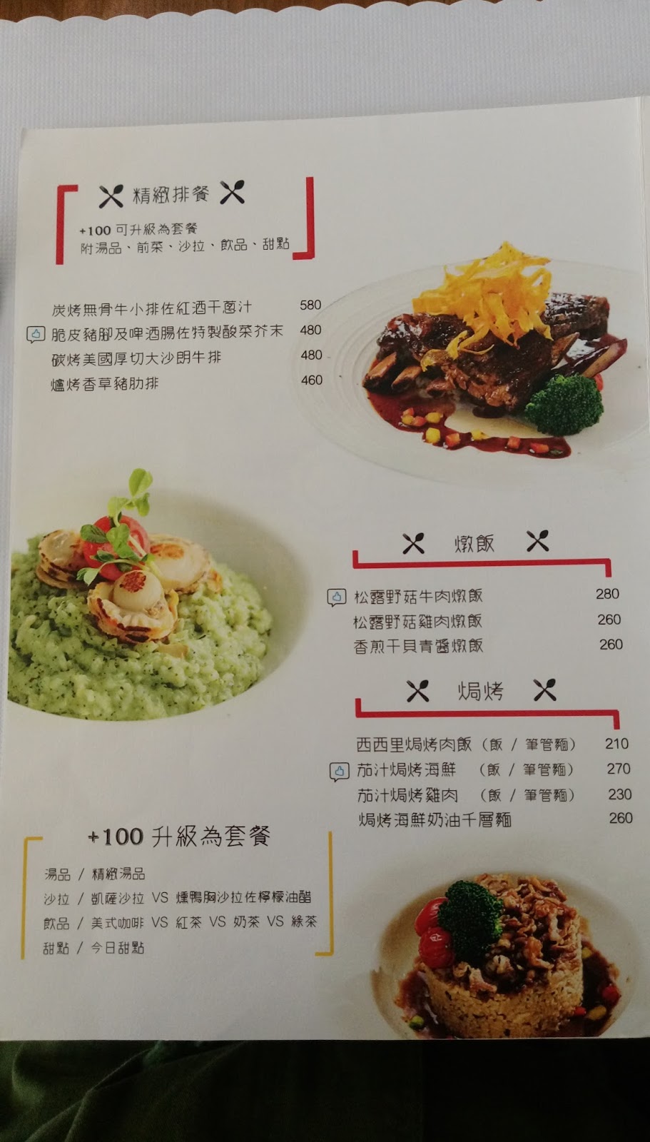 P.S. 升級套餐 +NT$100,有附沙拉、湯品、大蒜麵包、飲品以及甜點