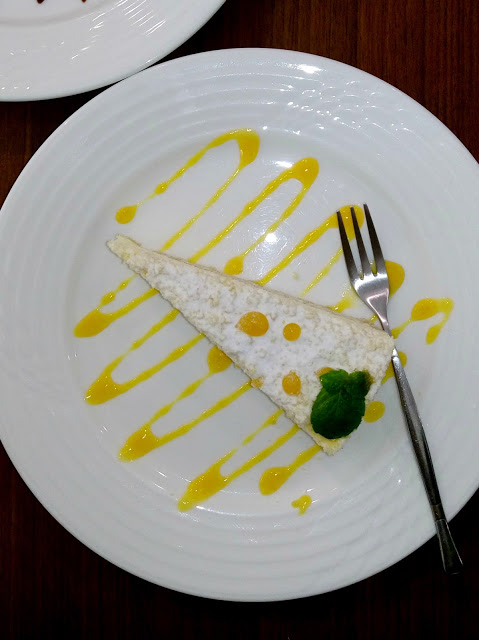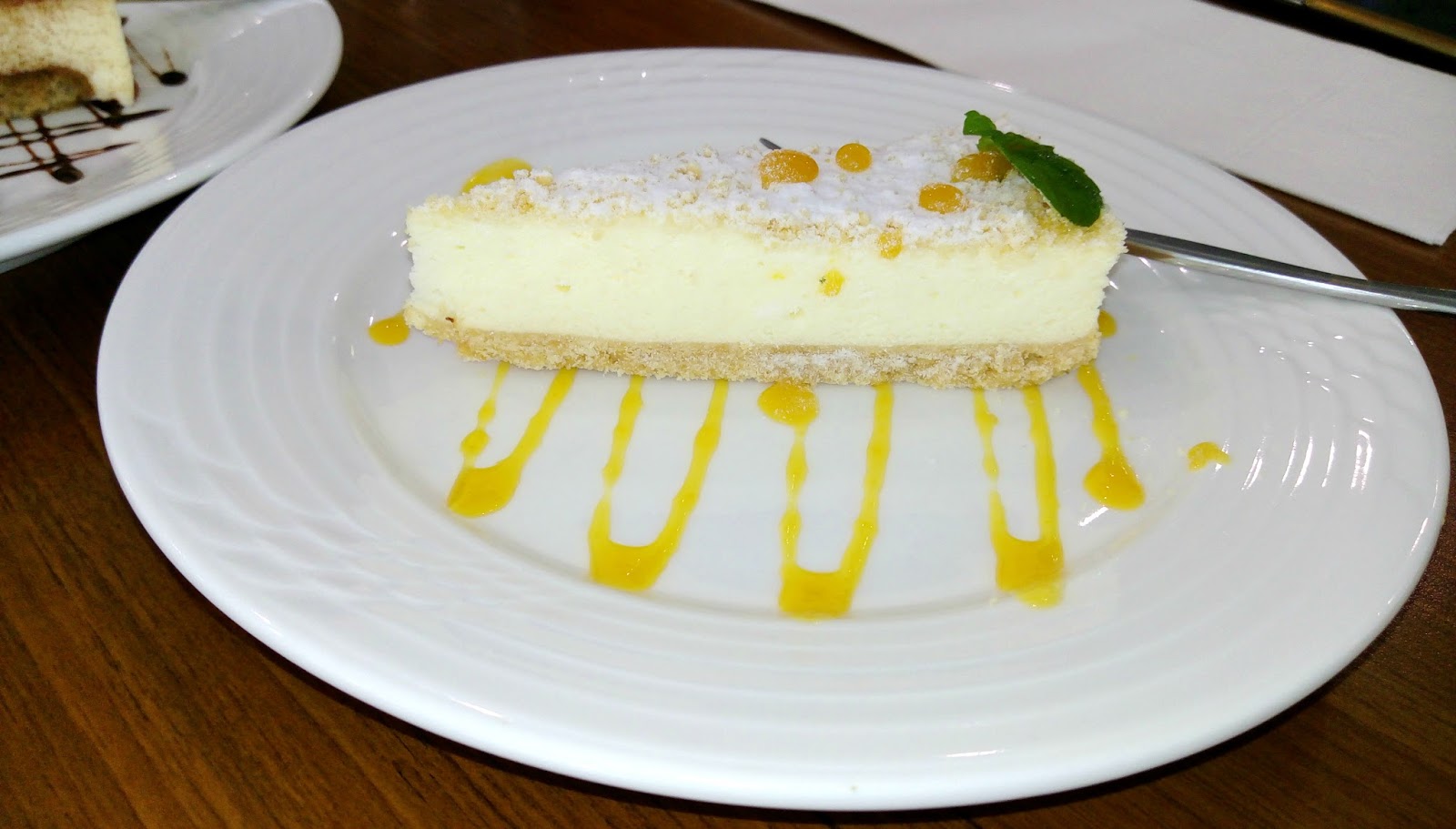 鮮奶起司蛋糕狗感真的就是濃醇香!我有點忘記,上面淋的應該是百香果醬!
