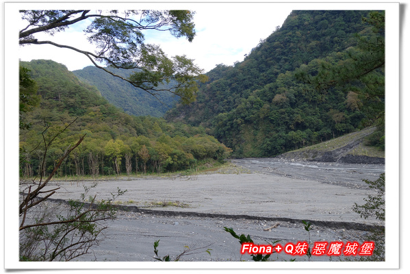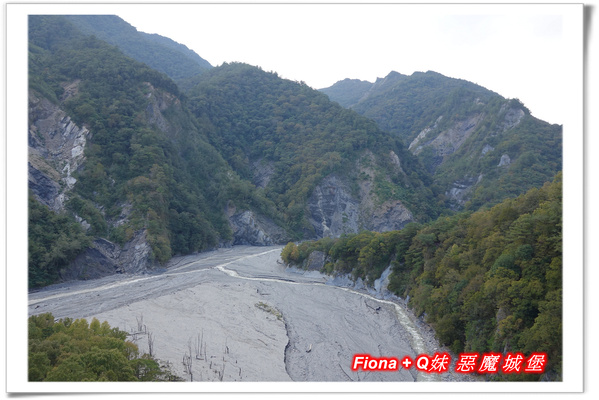 站在吊橋上往下望,可以看到萬大南、北溪匯流處,河道應該風災土石流所影響,受損情況感覺頗嚴重,一大片都是堆積的淤泥,而原本期待會是一片紅的楓林區,現在依舊是一整個翠綠,雖然早就知道了,但還是不免有些失望囉 !