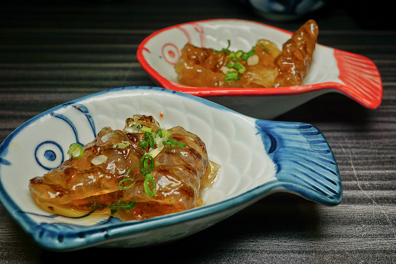裡面放的是魚皮, 略辣但很Q, 好吃的菜色