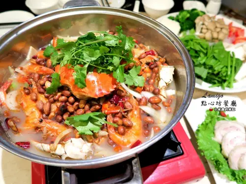 Lamigo點心坊的鍋物除了酸菜白肉鍋還有香辣蟹鍋、清蒸小羔羊,滿足每個人不同口味的需求