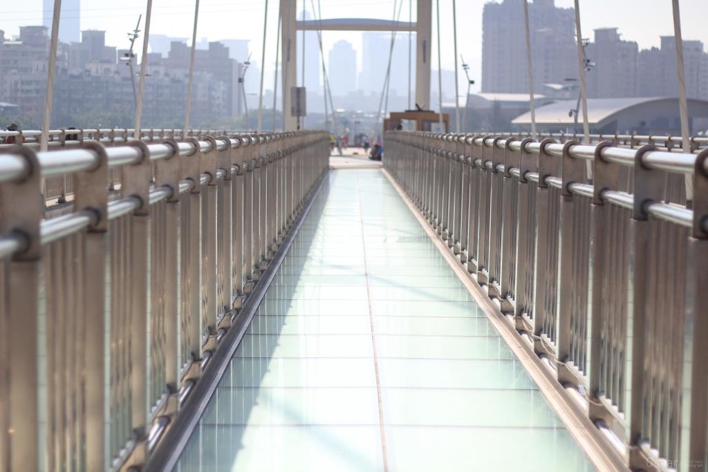 在橋面中段的部分 鋪面稍稍改變 以透明的玻璃建構