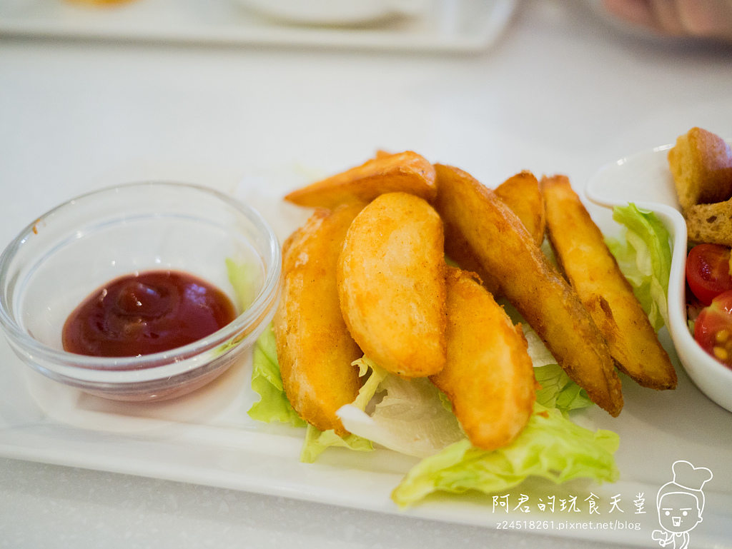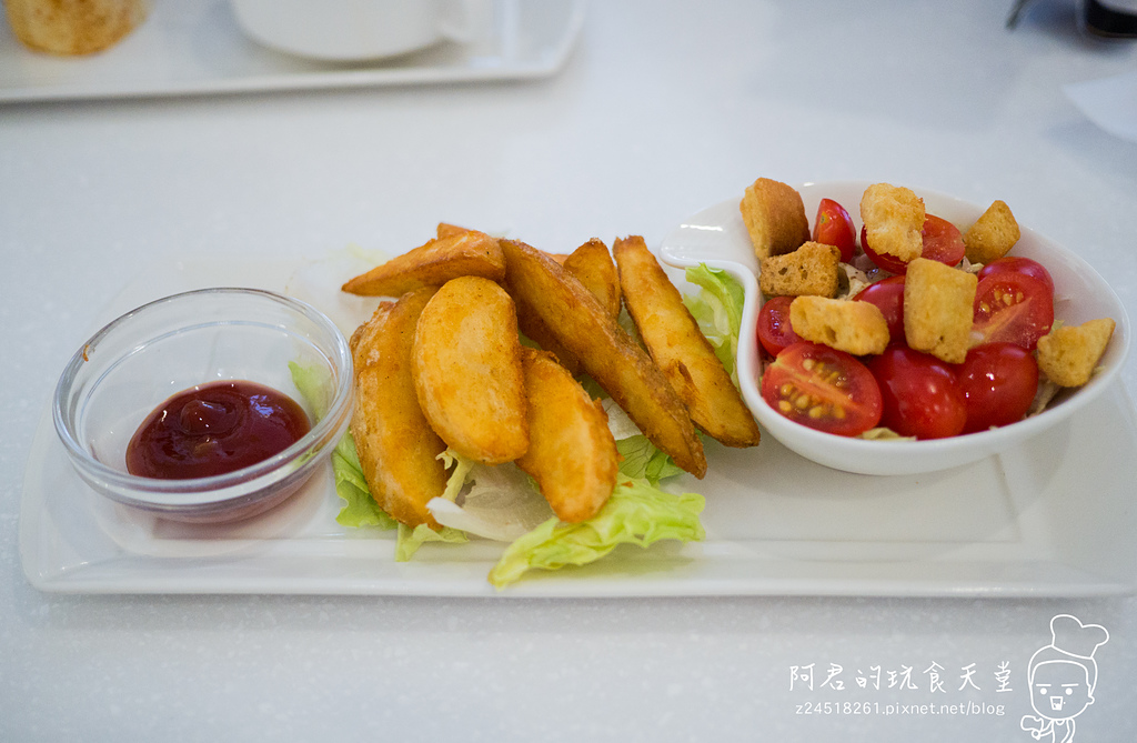 ▼生菜及炸物,這帶皮的黃金脆薯,炸得相當酥脆,切得也比較粗,口感很扎實。