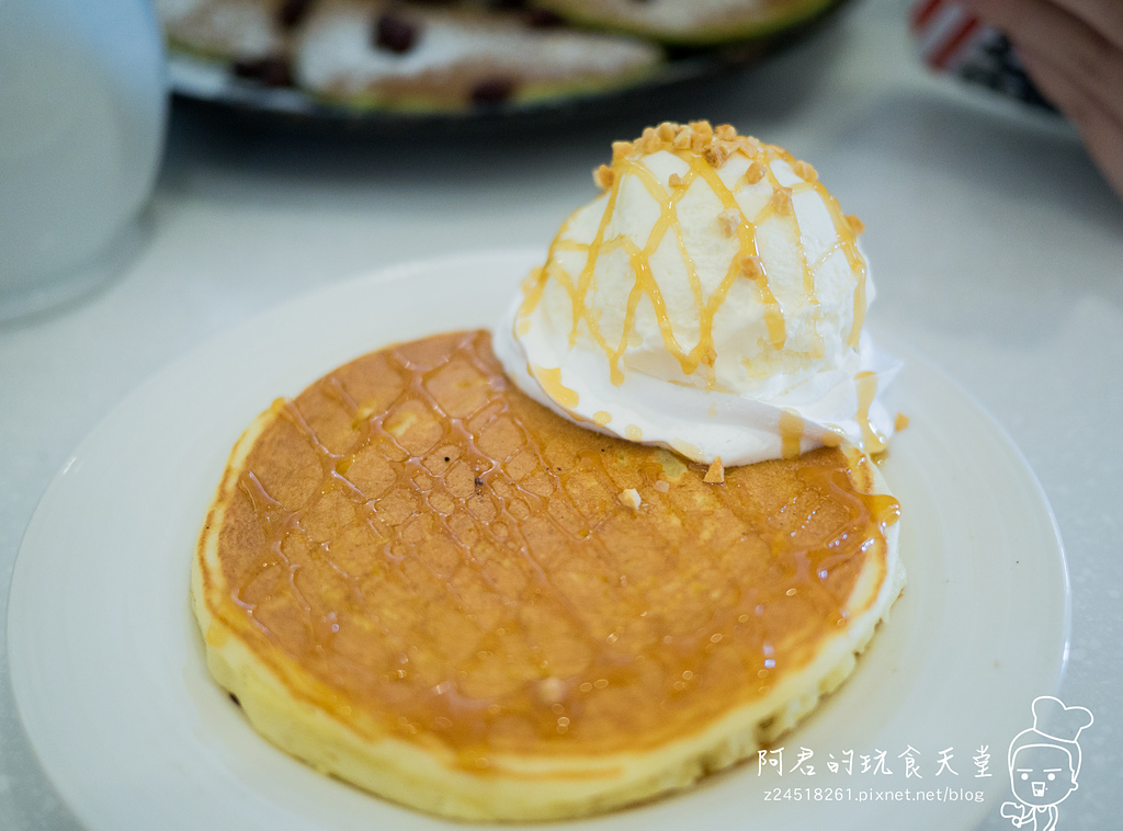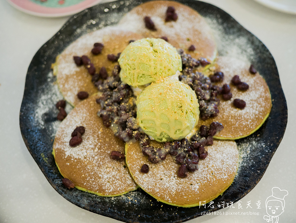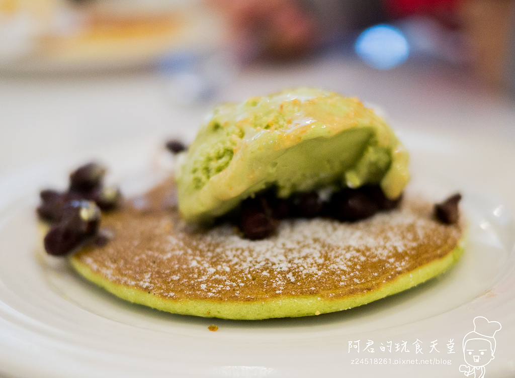 ▼抹茶鬆餅能吃出淡淡的抹茶味,不過鬆餅本身不會說太甜,搭配冰淇淋還有煉乳一起吃剛剛好。