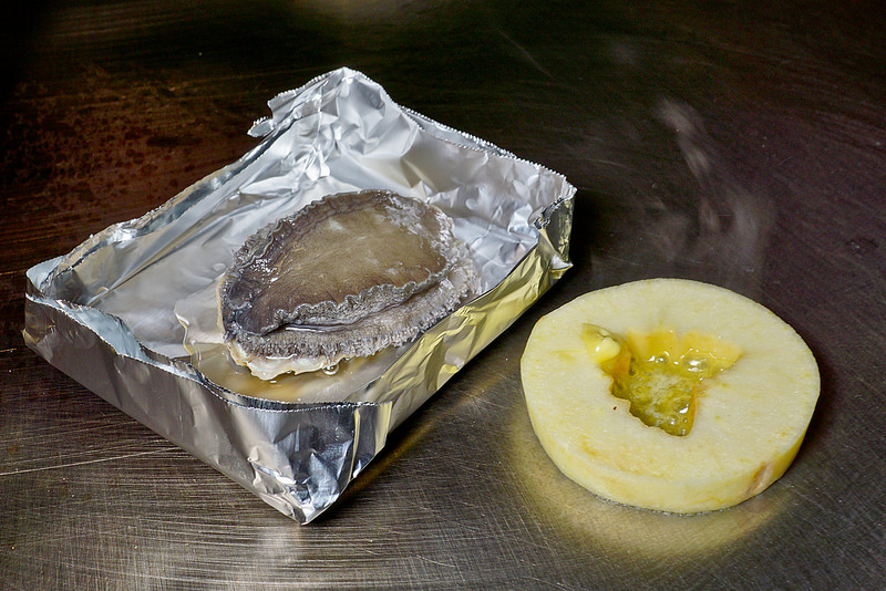 鮑魚是用個鋁箔紙盒來煎