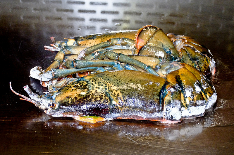 整隻活龍蝦對半切