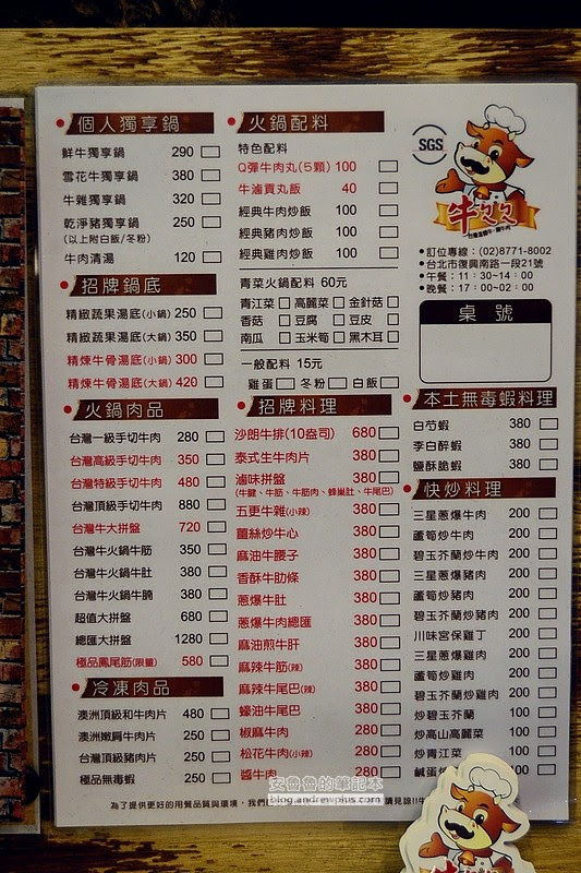 安魯魯小評餐點還有很多牛肉部位的菜色,另外也有快炒料理,火鍋搭配熱炒還挺有趣的