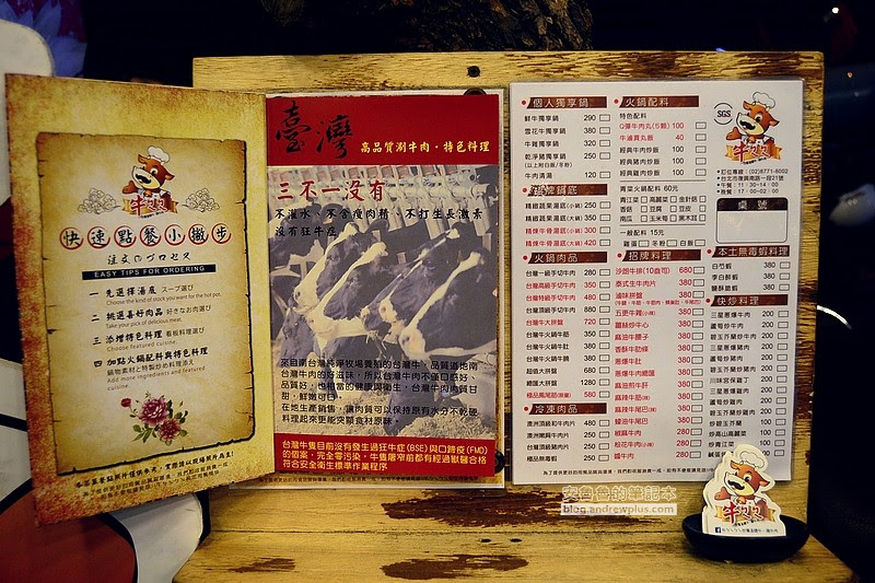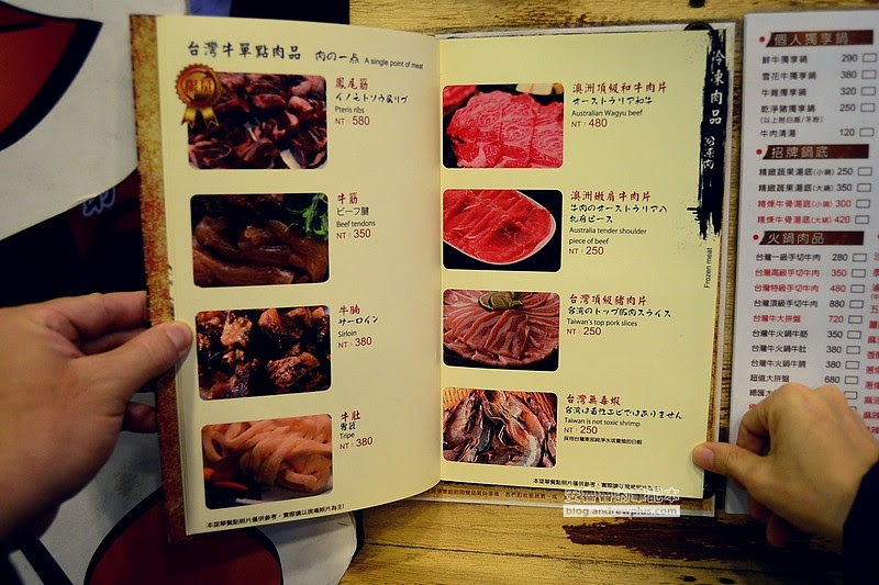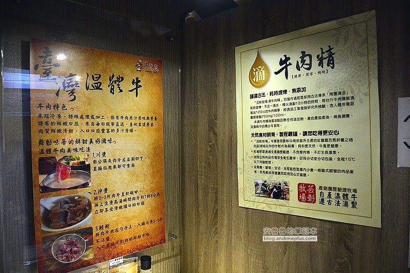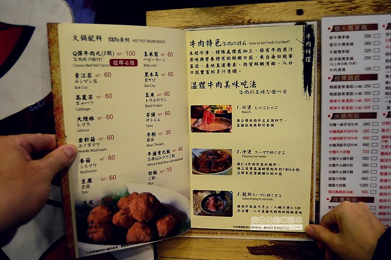 ▼牆上貼著三種吃溫體牛肉的方法!1.川燙 2.沖燙 3.輕涮
