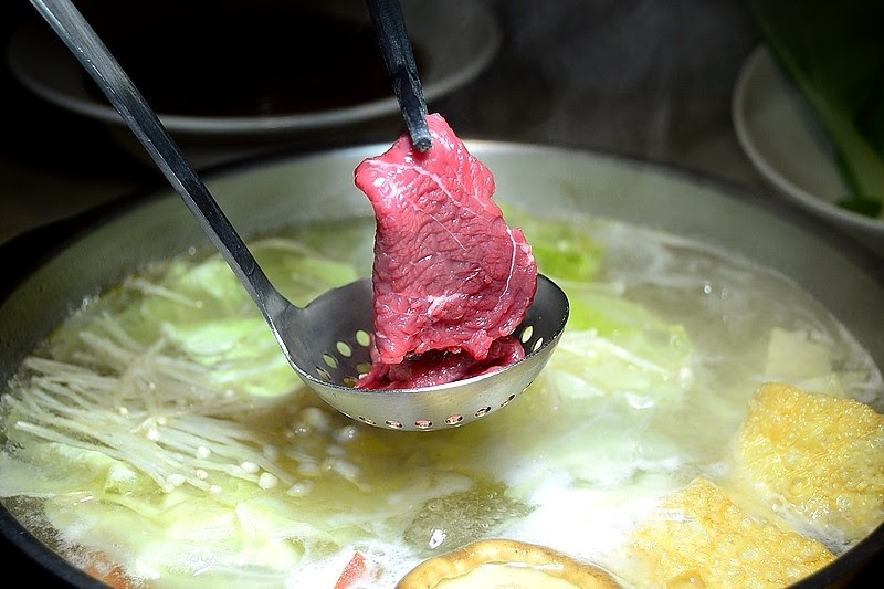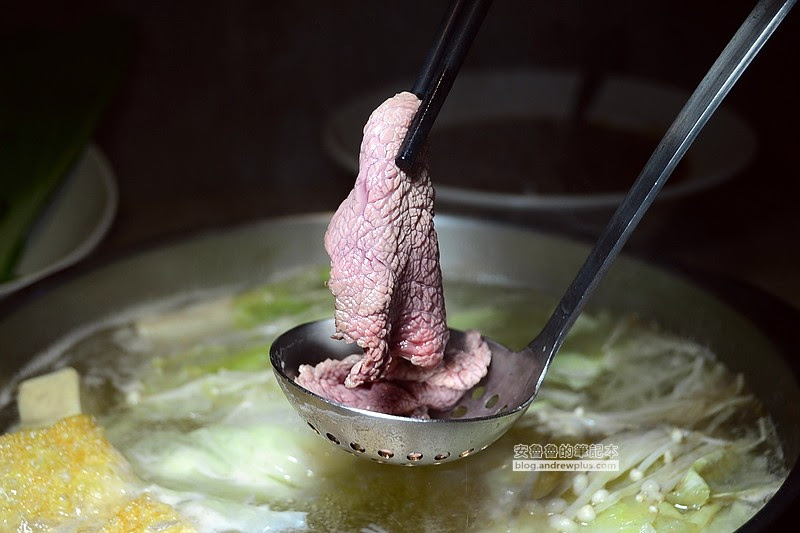 ▼主廚說,這兩種吃法比較能讓肉均勻的熟,川燙的方式是筷子夾住肉下鍋涮個4下就可以起鍋,有些客人不太熟悉操作方法,結果筷子夾住的地方完全不熟,或者是把肉燙得太熟了!所以才會建議客人用另外兩種方法涮牛肉