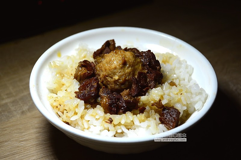 使用牛肉代替常見的滷肉,醬汁拌飯帶著明顯牛肉香氣,肉塊給的也算大氣,貢丸吃起來非常Q彈,一點也不馬虎