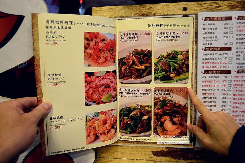 ▼接下來來看看簡單版的菜單,來這裡除了火鍋外,還有多種特色料理,像是宮保雞丁,炒高麗菜等,就算不吃火鍋來碗白飯再加上幾道快炒料理也能吃飽飽