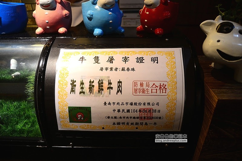 ▼在一樓櫃台上貼有牛隻的屠宰證明,證明肉品的來源都是國內的屠宰場