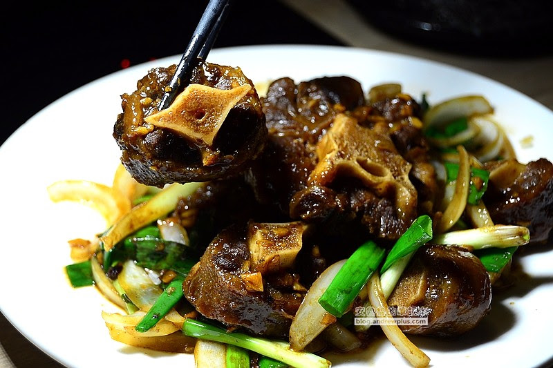使用蠔油進行拌炒,底層舖滿大量的蔥段、洋蔥,原先還擔心不能適應牛尾巴的口感,吃下一口就發現自己多慮了,外層是扎實的瘦肉口感,內層則是吃起來像軟嫩的牛筋