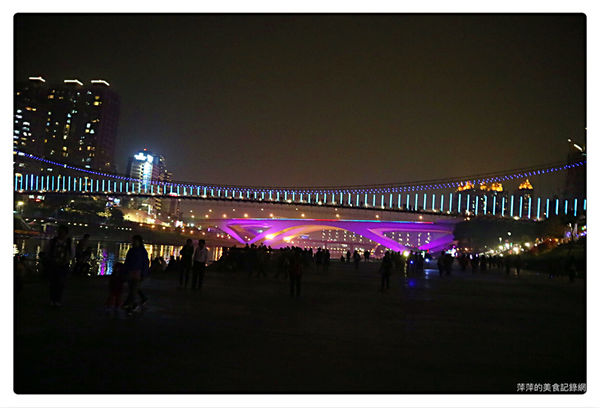 從吊橋往下拍,夜晚的碧潭和白天有著不同的景色