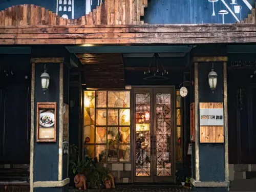 有個小屋頂~~有點像日本路邊賣關東煮的店