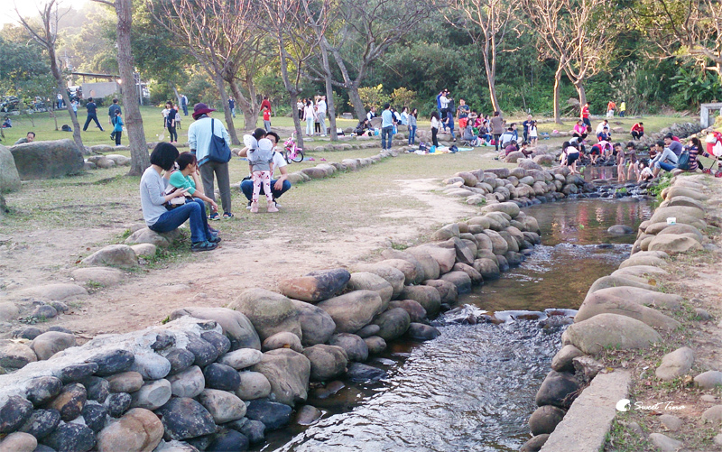 走到另一頭處更有像小溪般的區域,讓孩子可以踏踏水,雖然冬天,但那天的天氣非常的好,還是不少小朋友穿著小褲褲下水玩呢!