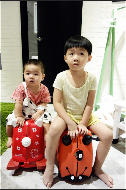 這種行李箱很有趣,平常可以當作玩具,讓小朋友乘坐在上方