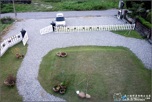 民宿外頭的白色圍籬笆,像是圈住一家人的幸福一般