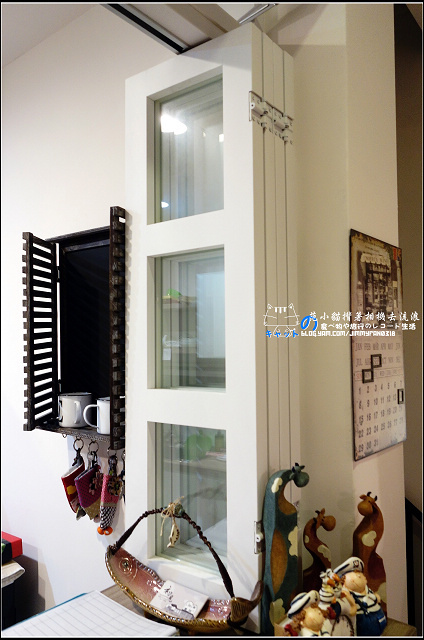 廚房旁還設計一個小吧檯,上頭也有拉門片的設計 (超讚)