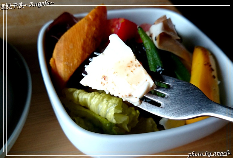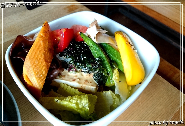 紅、黑、黃、綠、白五色健康蔬食通通都到位了~ 再加上蛋白質豐富的豆腐配上和風醬汁,嗯~~這盤真的健康滿分耶!!