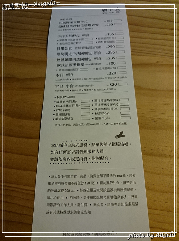 店內採半自助式服務,自由入座找位置,自行填單後至一樓結帳,餐點服務人員會送上桌。
