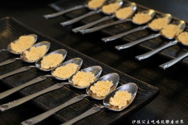 裡面的珍珠是採用分子技術製成,將荔枝汁包覆在裡面,口感有點像鮭魚卵,啵啵啵在嘴巴裡化開後感受荔枝的甜味