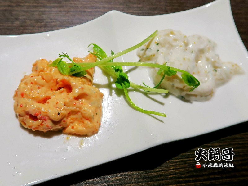 龍蝦沙拉跟鮑魚沙拉,裡面都有會啵啵跳的蝦卵