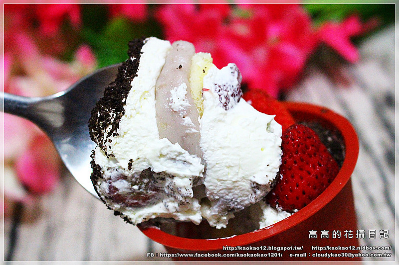 於是就讓我拿起大湯匙來深挖一口幫大家分析一下這個草莓盆栽的內容物到底有哪些吧!
