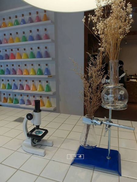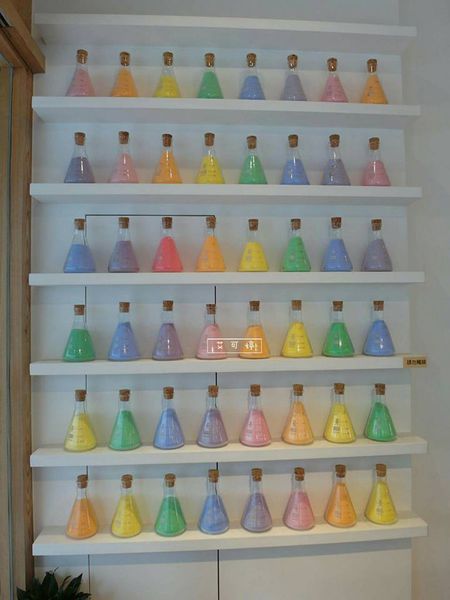 這一大片粉嫩的彩色錐形瓶牆,就是大家來這家店一定會來拍照的點,真的很漂亮,超殺底片的