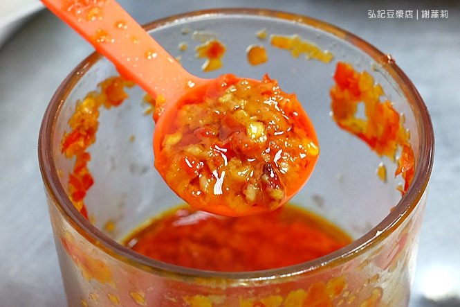 弘記豆漿店,紅噹噹扛棒有著十足顯眼的亮麗色澤,不過吸引我的,並不是它的招牌顏色,而是那不斷湧進來的人潮,店面不大,光是廚房就佔據了2/3的空間,雖然有提供幾桌座位,不過感覺外帶的比例似乎是比較高的。