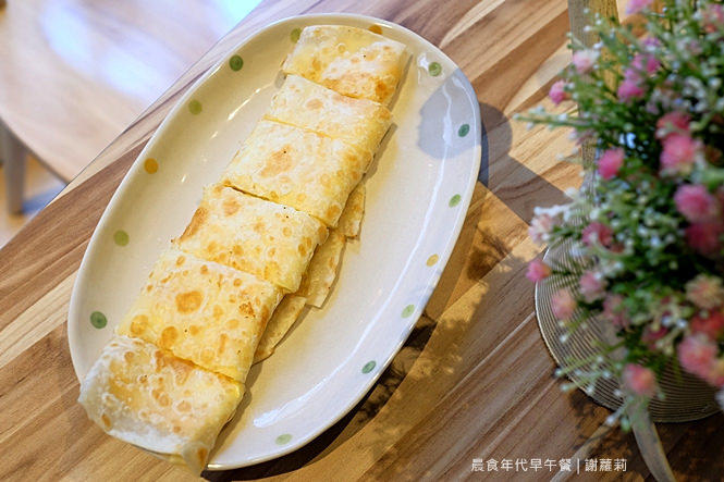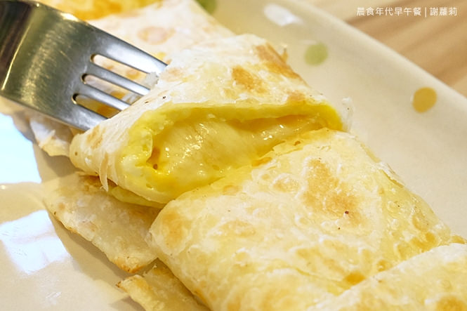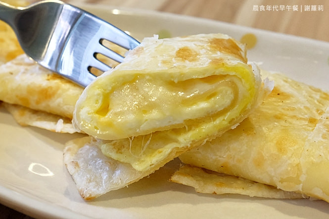不是那種很犯規的超長牽絲,但咀嚼在嘴裡,卻能感覺它起司的份量還不少,聽Boss說這是店內很受歡迎的蛋餅口味,相較於內餡,我倒覺得它的餅皮更是特別,吃來有點像是墨西餅皮,帶著略微厚度,有別於傳統蛋餅的油膩,是很清爽的口感呢!