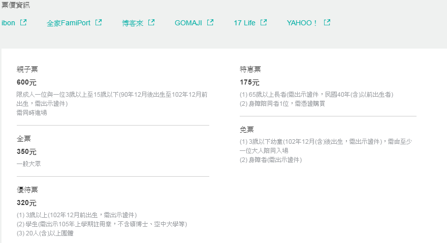 票價:請參考文內說明