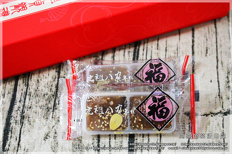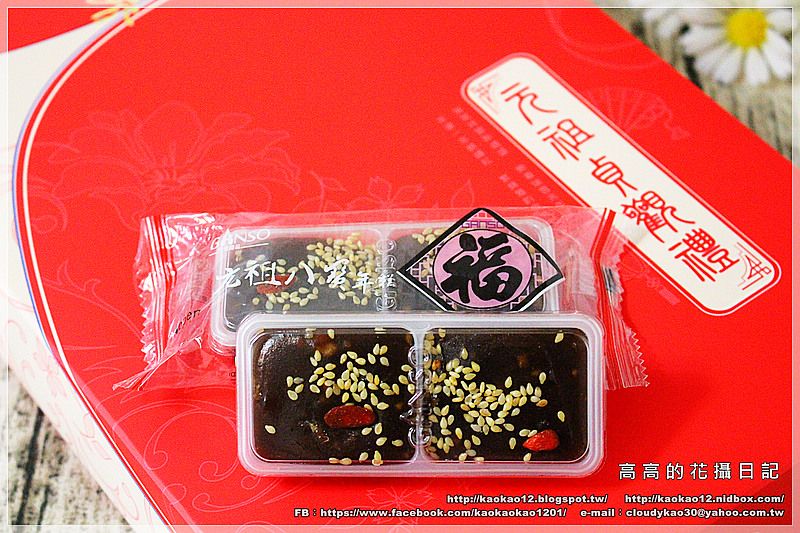 八寶年糕禮盒外觀紅色喜氣大方,真的是相當符合年節氣氛。