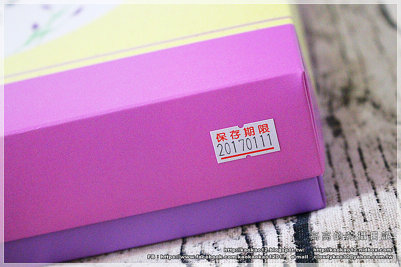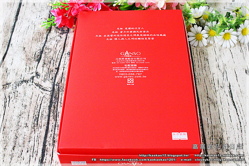 保存期限有標示在盒上,在禮盒後方有印上元祖食品的資訊。