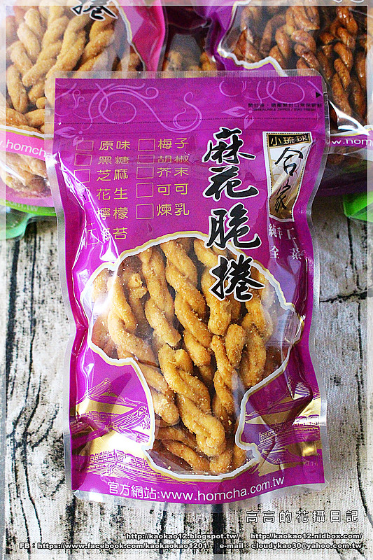 包裝袋後方也有印上合家手工麻花捲的小故事,合家是將原本粗硬且甜膩的麻花捲升級後再進化,