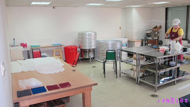 這裡是製作饅頭的場所,每一個工作人員從上班開始就會做消毒殺菌!!~很乾淨的呢~