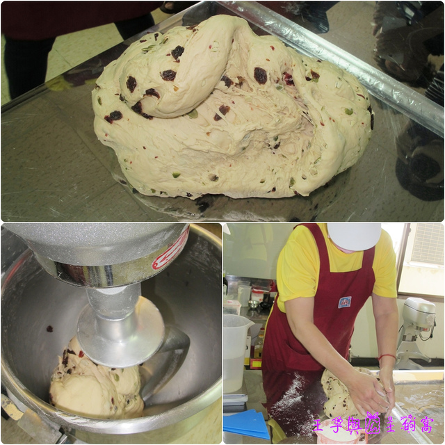 現在~工作人員要示範製作堅果乳酪饅頭,是使用麵糰+老麵+自然酵母...絕不添加化學添加劑