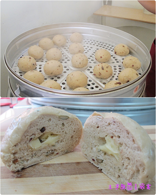 芝麻口味的饅頭也出籠了!!好香的饅頭!!看那個熱熱的煙,就覺得好棒!!~