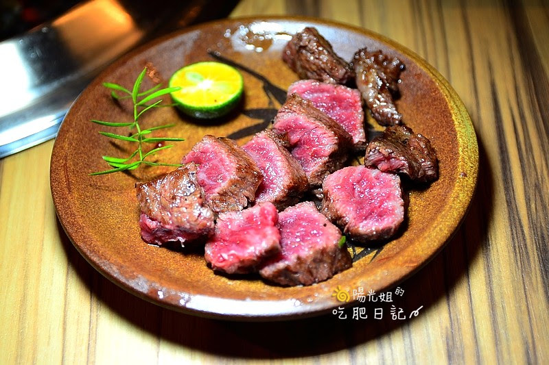 ▼這樣一塊好肉,如果烤到全熟,那真的就浪費了,所以店員建議是3~5分熟! 對於A君來說,3分熟絕對不是問題,但姐還是希望熟一點啦!